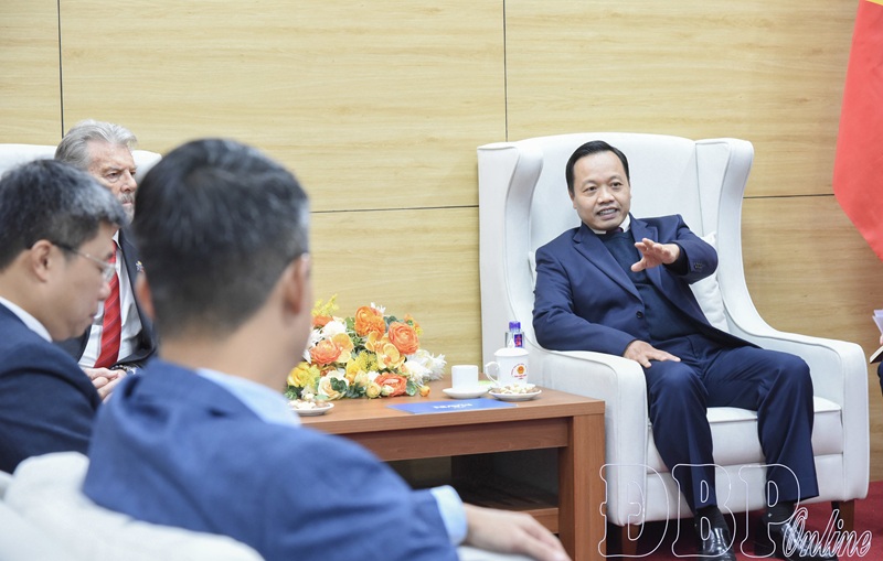 ĐBP - Chiều 3/12, Bí thư Tỉnh ủy Trần Tiến Dũng tiếp Đoàn công tác của Công ty Cổ phần Tập đoàn Mavin do ông David John Whitehead làm Trưởng đoàn, nhân chuyến thăm và làm việc của đoàn tại tỉnh.