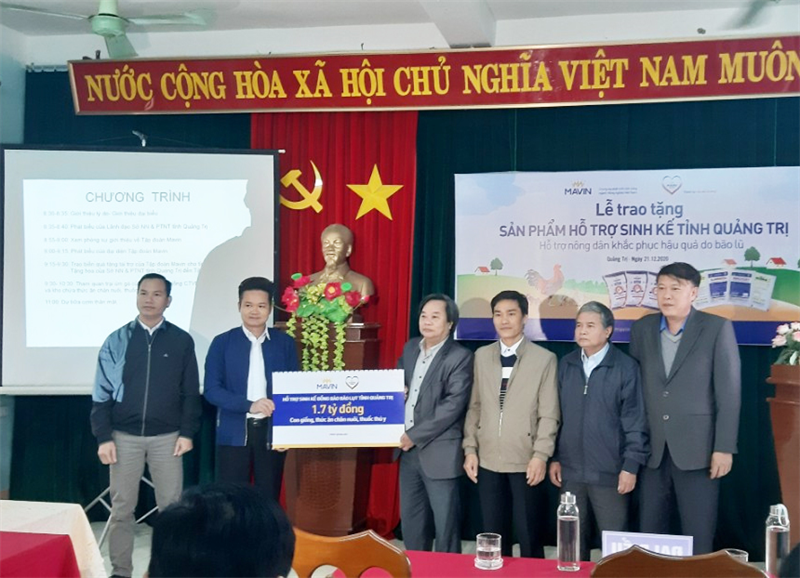 On 21/12/2020, in Quang Tri province - Mavin Group gave the package of livelihood support products to Quang Tri province, supporting farmers to overcome the consequences of storms and floods.