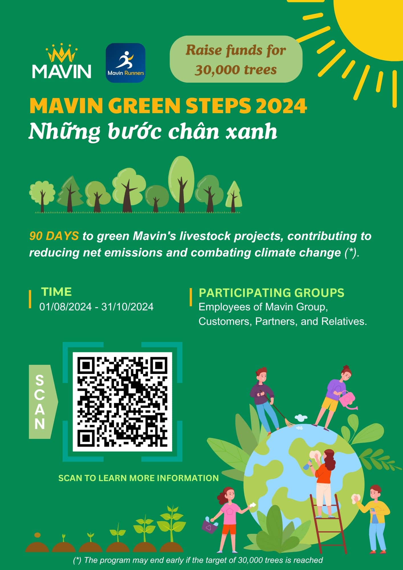 The campaign will continue until October 31, 2024, to plant 30,000 trees across Mavin's livestock projects nationwide. "Green Steps" warmly welcomes participation from Mavin employees, valued customers, and partners through meaningful running activities, which not only promote personal health but also allow them to contribute to the green fund, supporting the Net-Zero goal and combating climate change.