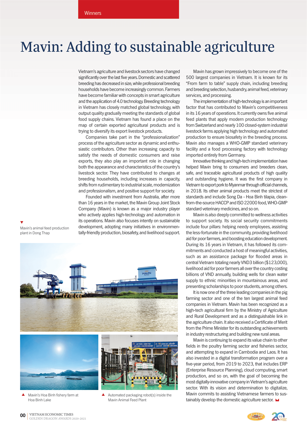 Mavin: Adding to sustainable agriculture Publish: 27 Tháng 04, 2021 Viewed: 1202 Related news Cai Lay Veterinary Pharmaceuticals officially go live ERP SAP S/4HANA Mavin conducted digital transformation with HiStaff HR solution The delegation of Son La province visited Mavin Group Livelihood support to farmers of Nhu Xuan High quality tilapia for Lunar New Year News & Events Mavin Group Honors Internal Trainers – Silent “Torchbearers” of Knowledge Mavin My Long High-Tech Pig Farm Achieves Global S.L.P Certification Mavin accompanies Veterinary students on their journey of knowledge Mavin honored among Vietnam’s Top 10 Value-Creating Enterprises 2025 Mavin offers career opportunities and scholarships to students of Tay Nguyen University