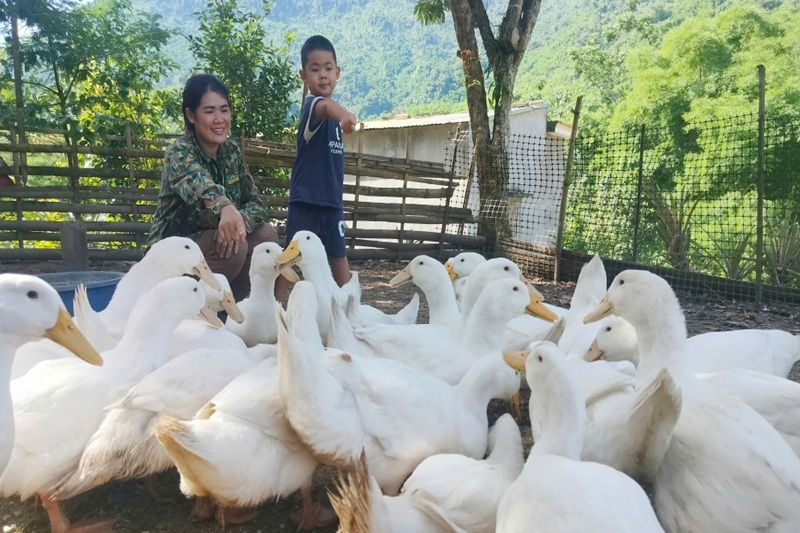 Gia đình chị Minh từng sống dựa vào vài sào ruộng và nghề bán luồng (một loài tre bản địa) bấp bênh. Khi nhận 80 vịt giống Cherry Valley, cùng hơn 300 kg cám và được đào tạo kỹ thuật chuồng trại, tiêm phòng, chăm sóc, chị đã bắt đầu với niềm tin lớn. Sau 45 ngày, chị thu về hơn 14 triệu đồng từ đàn vịt đầu tiên, giúp chị đóng học phí cho con và đầu tư tái đàn. “Tôi tin rằng nếu tiếp tục chăn nuôi vịt Mavin, gia đình tôi sẽ ổn định hơn”, chị Minh chia sẻ.
