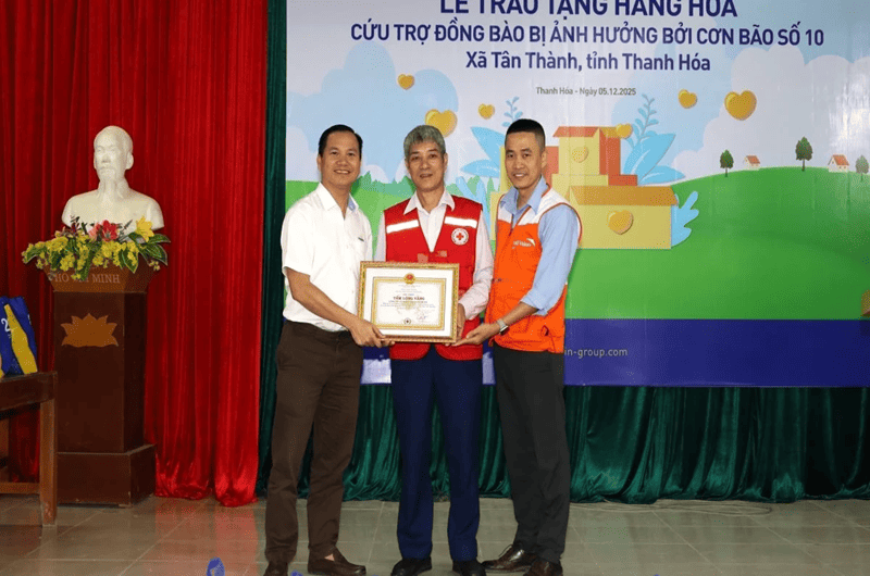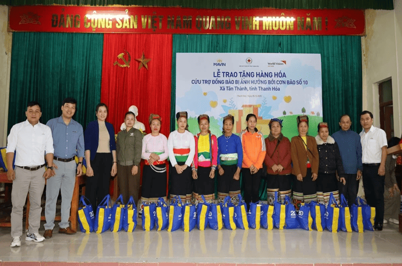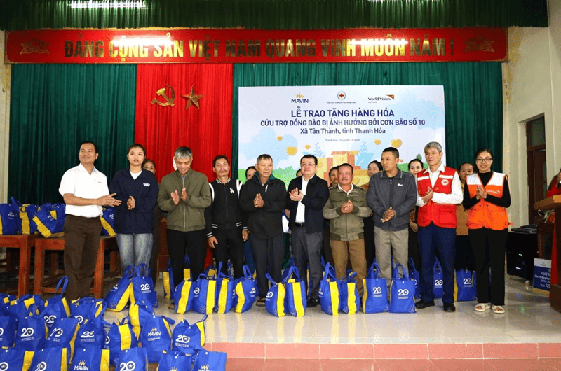 Sáng 05/12, Công ty CP Tập đoàn Mavin phối hợp với Hội Chữ thập đỏ tỉnh Thanh Hóa và Tổ chức World Vision International tại Việt Nam tổ chức chương trình trao tặng hàng hóa cứu trợ đồng bào bị ảnh hưởng bởi cơn bão số 10 năm 2025 tại xã Tân Thành.