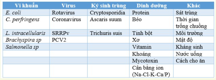 Bảng 1: Tiếp cận toàn diện đối với bệnh tiêu chảy sau cai sữa ở heo con