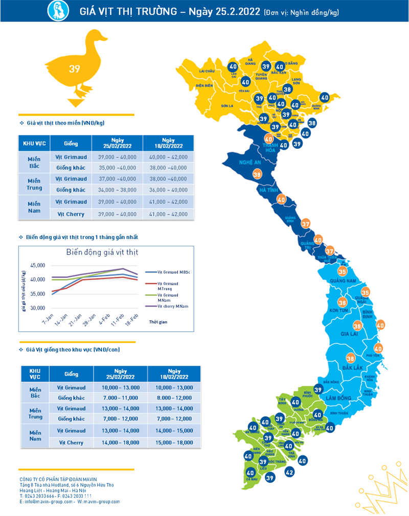 Xin mời tham khảo diễn biến giá vật nuôi tuần qua theo tổng hợp từ nguồn thông tin thị trường của Bộ phận Kinh doanh Tập đoàn Mavin dưới đây: