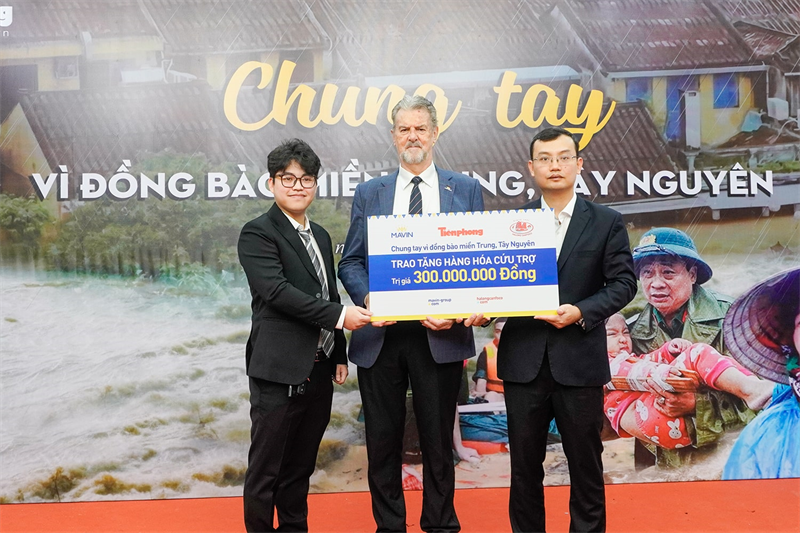Chủ tịch Mavin cũng cho biết, đã sẵn sàng cử đại diện tại khu vực miền Trung, Tây Nguyên đồng hành cùng Báo Tiền Phong trong các chuyến trao quà tại hiện trường, thể hiện cam kết luôn đồng hành cùng cộng đồng không chỉ bằng vật chất mà cả bằng sự hiện diện và sẻ chia trực tiếp.