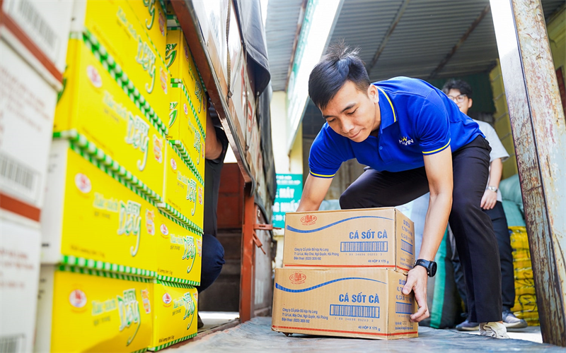 Cán bộ trẻ Mavin và Hạ Long Canfoco cùng chuyển hàng đến ga tàu đưa vào Gia Lai tiếp sức bà con vùng lũ