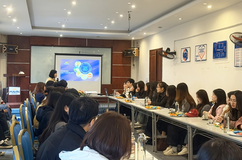 Tại Hưng Yên, sinh viên đã tham quan Nhà máy thức ăn thủy sản, thức ăn cho thú cưng và Nhà máy chế biến thức ăn gia súc của Tập đoàn Mavin, trực tiếp tìm hiểu dây chuyền sản xuất hiện đại, khép kín theo tiêu chuẩn quốc tế, đồng thời trao đổi với đại diện Ban quản nhà máy về định hướng phát triển, nhu cầu tuyển dụng và chiến lược quản trị nguồn nhân lực.